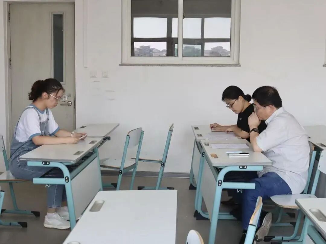 教师赵勇、方菊、杨芳、吴延国、赵云龙、杨迪担任。在各位班导生的配合助力下,语音测评活动有条不紊地进行,同学们依照学号顺序,依次进入考场完成测试。