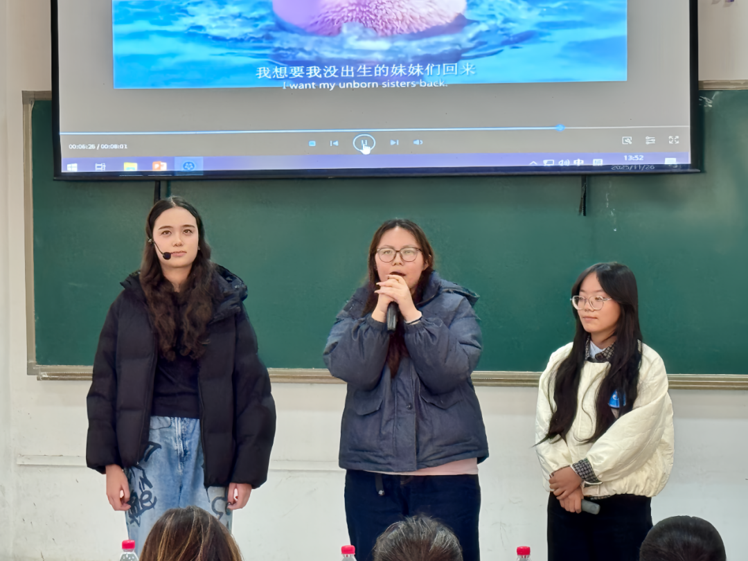 赛后,Goncalo Dias老师对本次比赛进行专业点评。他首先向全体选手致以诚挚谢意,感谢大家用精彩表现打造了一场兼具听觉享受与视觉张力的视听盛宴;随后特别肯定了选手们的用心——不仅语音语调模仿确切到位,更通过生动有趣的情景演绎为作品注入灵魂,让模仿不再局限于形式复刻,更具感染力与观赏性;最后,他鼓励同学们继续保持探索热情,在创意表达中大胆突破,为未来赛事碰撞出更多亮眼火花。